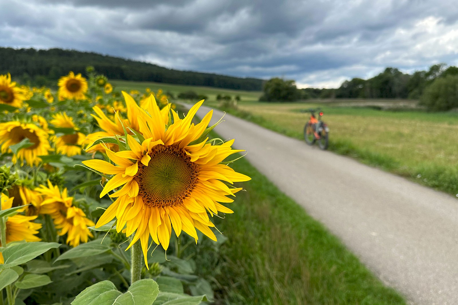 Auf meinem Heimweg lächelte mir dieses Sonnenblumenfeld zu und innerlich lächelte ich so gleich zurück. Dabei wunderte ich mich, wo diese Pracht so plötzlich hergekommen ist. Denn am Morgen bzw. die Tage davor war da nichts, bzw. ich im Tunnelmodus achtlos daran vorbei geradelt …