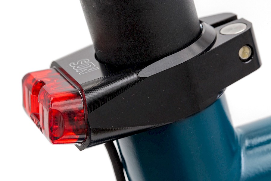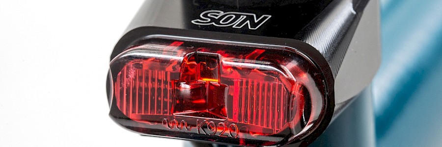 Bei der Recherche auf der SON-Homepage zum bisherigen Rücklicht, das an der Sattelstütze befestigt wird, war da auch das SON-Rücklicht-Sattelschelle zu sehen – was für eine Überraschung. Auf die Anfrage per Mail, ob das Ding schon verfügbar sei, kam so eine typische Antwort aus dem Hause SON: »Guten Morgen Stefan, die Rücklichter sind offiziell noch nicht lieferbar, da es noch keine Montageanleitungen gibt. Da ich aber davon ausgehe, dass deine Mitarbeiter die Teile auch ohne Anleitung montieren können, bekommt ihr weltexklusiv als erster Fahrradhersteller diese Rücklichter. Grüße aus Tübingen«. Allein schon für diese Art der lösungsorientierten Partnerschaft lieben wir die Tübinger ;-)