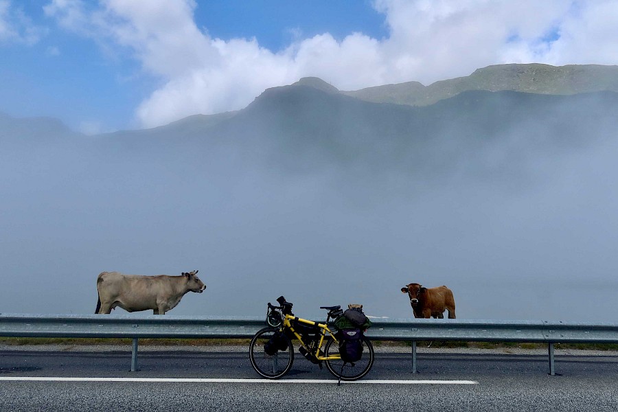 Die dritte Reise mit meinem geliebten zinkgelben [RAL1018] Velotraum Speedster soll durch Westeuropa gehen. So radle ich also im Mai 2023 von Bern los. Via Genfersee geht es nach Frankreich. Mein ständiger Begleiter: nachmittagliche Gewitter- und Hagelstürme. Im munteren Zickzack und mit Abstechern nach Korsika und Mallorca erreiche ich im Hochsommer die Pyrenäen. Mal via die famosen Tour-de-France-Pässen, mal auf einsamen Bergsträßchen arbeite ich mich langsam zu den Picos de Europa vor. Und dann weiter nach Portugal.Trotz teilweise ziemlich ruppig-steinigen Bergstrassen macht mein Speedster wie immer alles freudig mit und muckt fast nie rum. Ja, wir sind definitiv ein gutes Team.