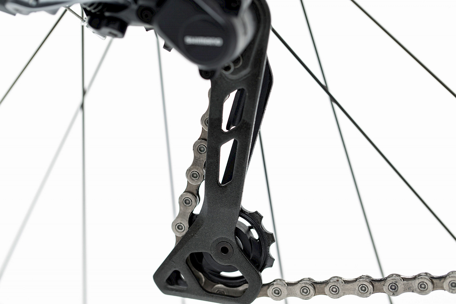 Jetzt kommt Veloträumer Moritz Pfrengle ins Spiel. Ihm war aufgefallen, dass die Kettenkäfige des GRX- und XT-Schaltwerks die gleiche Aufnahme aufweisen. Wichtig, wir reden hierbei vom GRX RD-812-Schaltwerk, das in Kombination mit einem Einfach-Kettenblatt (1×11) bis zu 42 Zähne schaltet. Die Idee war nun, das GRX-Schaltwerk mit dem längeren XT-Schaltkäfig (RD-M8000) auszustatten und somit die Gesamtkapazität zu erhöhen.