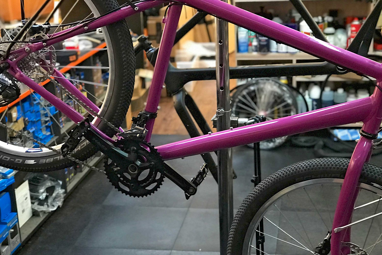 Inzwischen sind fast alle von uns bestellten GRX-Komponenten aus Japan eingetroffen, und wir konnten schon mal ein vorhandenes Ausstellungsrad auf die GRX umstricken.