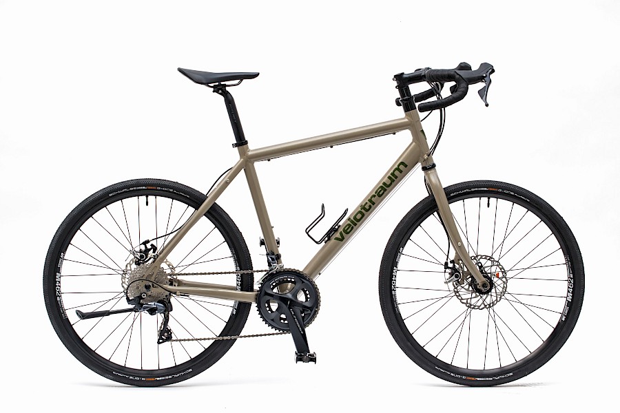 Mit typischer Gravelbereifung (42-584) wiegt dieser Speedster 10,6 Kilogramm, trotz 180er Bremsscheibe am Vorderrad und Parkstütze. Die Hervorhebung der Parkstütze – gerne auch als »Ständer« bezeichnet – ist der Velotraum-Historie geschuldet. Dazu muss man wissen, dass die früheren Speedster-Rahmen keine Aufnahme für die Parkstütze hatten. Wir waren viele Jahre der felsenfesten Überzeugung, dass dieses »uncoole« Ding von keinem Speedsterkunden gewünscht werden darf ;-)