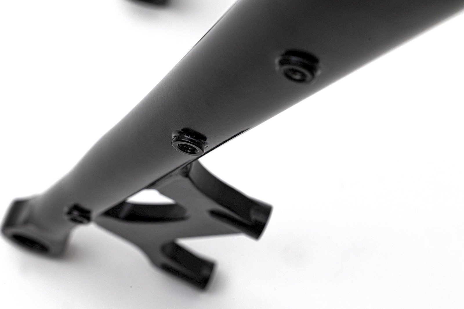 Mehr Stabilität muss also nicht mehr Materialeinsatz bedeuten, sondern erfordert clevere Konstruktion. Wenn dann so ein sicherheitsrelevantes Bauteil wie eine Gabel so elegant daherkommt, fällt die Entscheidung, seinen Speedster oder Rooter bei hohem Systemgewicht damit auszustatten, nicht schwer.