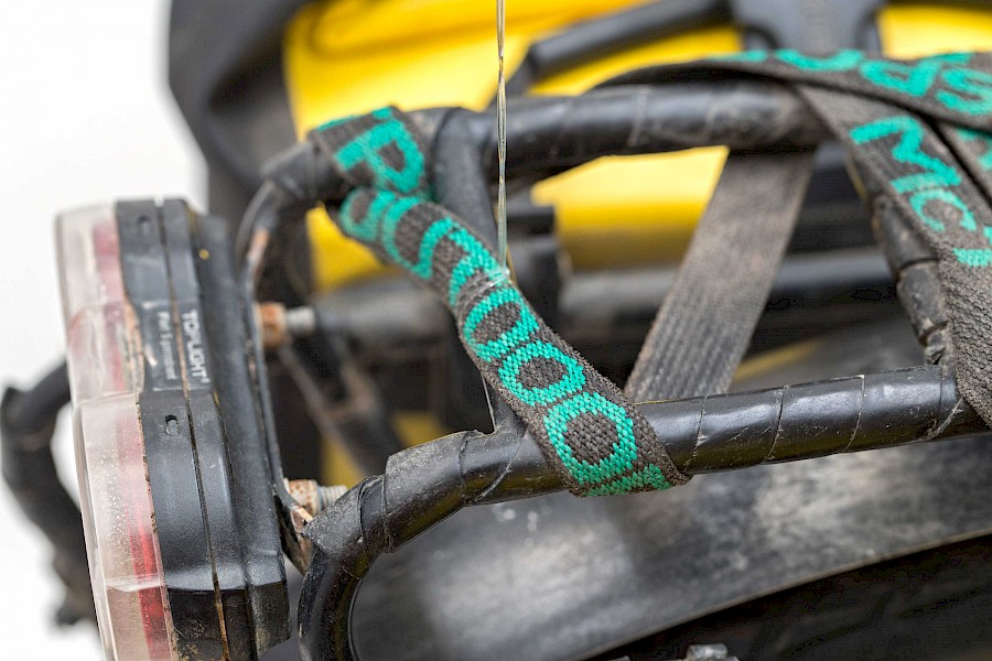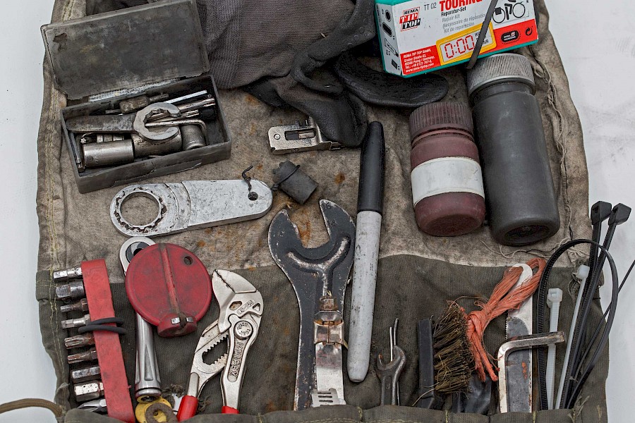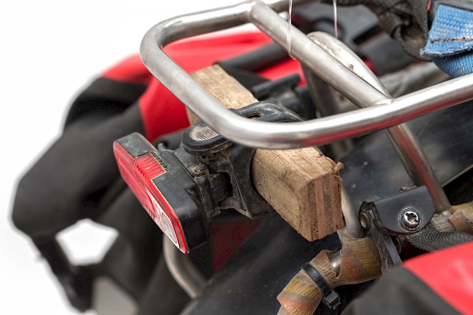 Wir haben den beiden 2017 noch zwei Disc-Gabeln gesponsert, als sie ihre Räder vom klassischen Reiserad in Bikepacking-Räder umgestrickt haben. Interessant ist, dass nicht nur die Velotraum-Rahmen die Strapazen gut überstanden haben (Andis VT-900 in XXXL hat bereits 90.000 Kilometer auf dem Buckel …), auch die Tubus-Träger, die Shimano-Schaltanlage, die Cane Creek-Stützen sind noch Originalteile. Das spricht für deren Qualität und für die Mechaniker- und Wartungsfähigkeiten von Andi ;-)