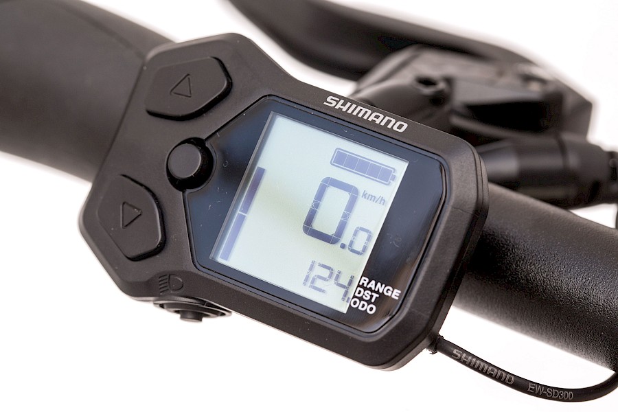 Noch nicht in unser reguläres Programm hat es die SC-E5003-Bedienungseinheit für das EP8-System geschafft. Im kompakten SC-E5003 sind ein Display und die Schalter für die Unterstützungsstufen sowie für die Beleuchtung in einem Bauteil vereint. Insbesondere die Möglichkeit das Licht direkt an- und auszuschalten und das nochmals reduziertere Erscheinungsbild des Cockpits haben ihren Charme. Weniger überzeugend finden wir das rudimentäre Schwarz-Weiss-Display und die ergonomisch sowie taktil wenig überzeugenden Schalter für die Unterstützungsstufen – kurzum, wir sind da noch unentschieden.