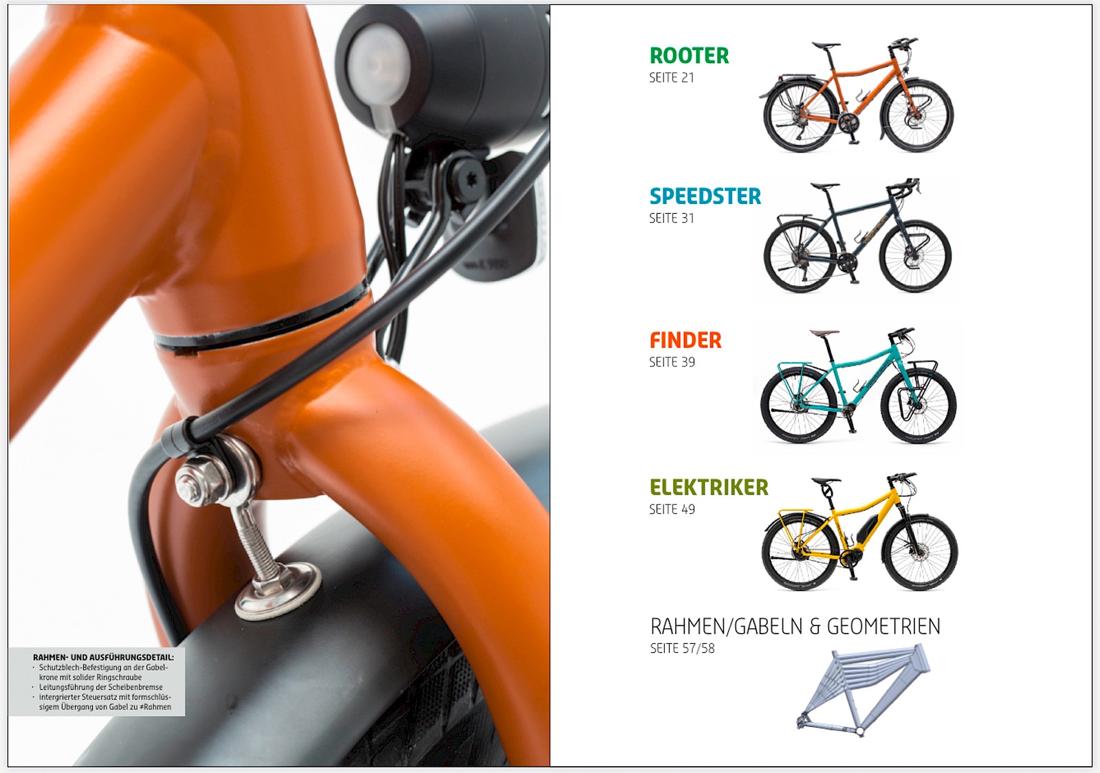 Nach intensiven Abwägungen sind wir bei den vorgestellten Namen geblieben: Die Fahrradwelt »Konzept« heißt nun »Rooter« und aus dem »E-Finder« wird der »Elektriker«. In diesem Zuge haben wir auch die Bezeichnungen der Ausstattungsvorschläge komplett angepasst, also aus »VK10« wurde »R4«, aus »FD2« wurde »F2« usw.