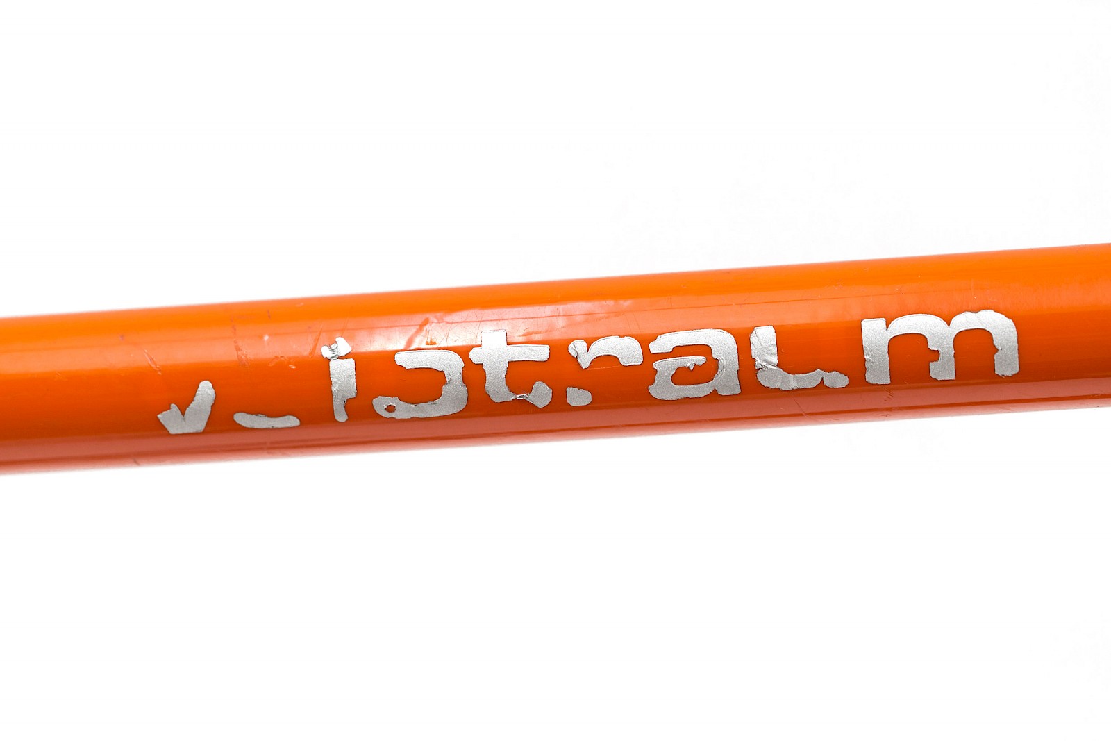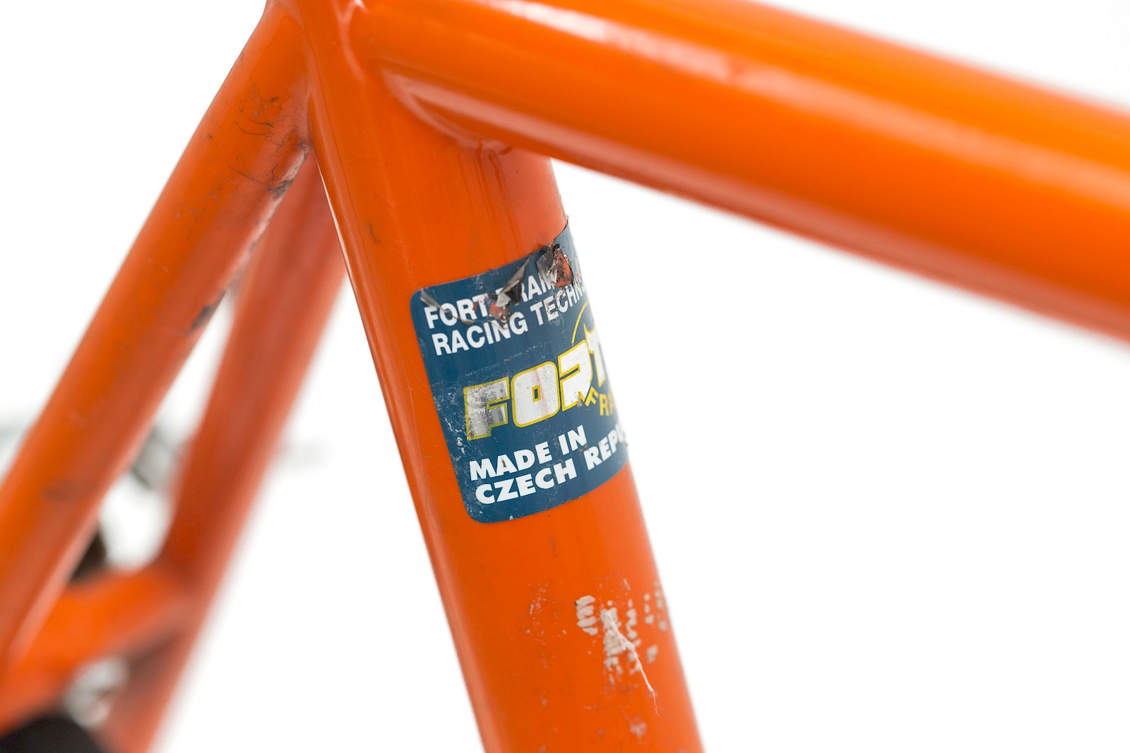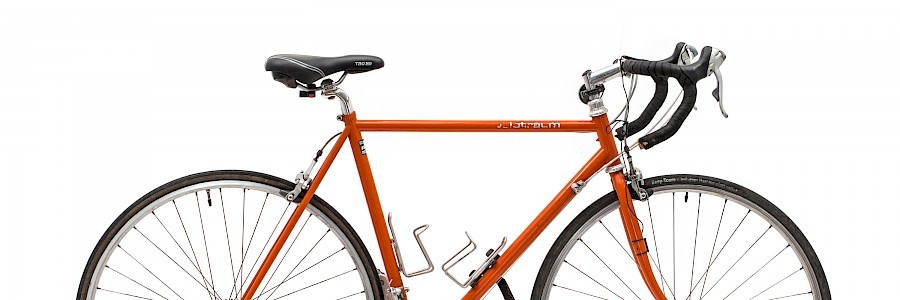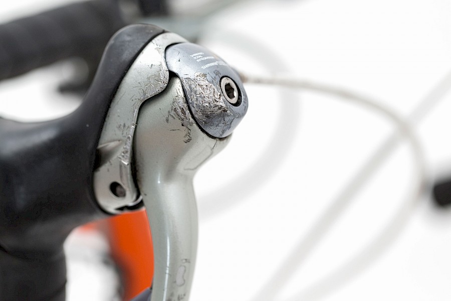 Was zudem ins Auge sticht ist die unglaubliche Filigranität – das Rädchen ist geradezu durchsichtig. Neue Erkenntnisse, Materialen und Anwendungsbereiche haben dafür gesorgt, dass sich bei der Dimensionierung von Rahmen und Bereifung viel getan hat, sicher zum Leidwesen von manchem Retro-Fan. Für ein Rennrad waren damals schon 23 Millimeter breite Reifen das absolute Maximum, und klar, so ein Rad war damals ausschließlich für die Straße gedacht, die damals leerer und besser waren als heute. Die Gebrauchsspuren zeigen, dass der orangene Renner nicht nur in der Garage herumgestanden ist, sondern ordentlich im Einsatz war und die eine oder andere Blessur davon getragen hat.