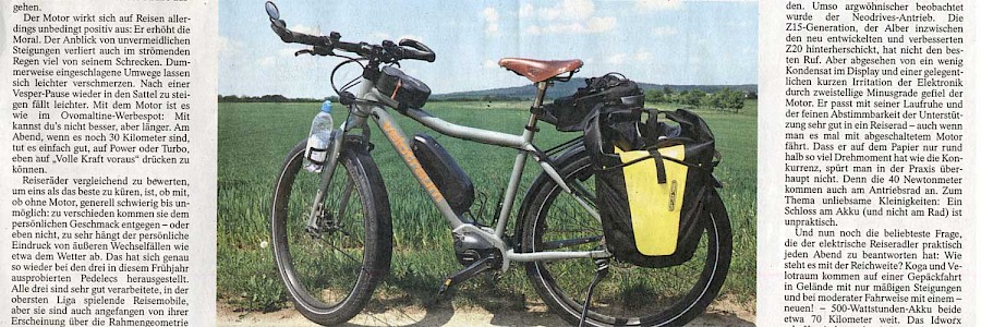Viel Zeit und Raum widmet der langjährige F.A.Z.-Fahrradspezialist Hans-Heinrich Pardey drei Radreise-tauglichen Pedelecs, mit dabei ein E-Finder »FD3E«.
