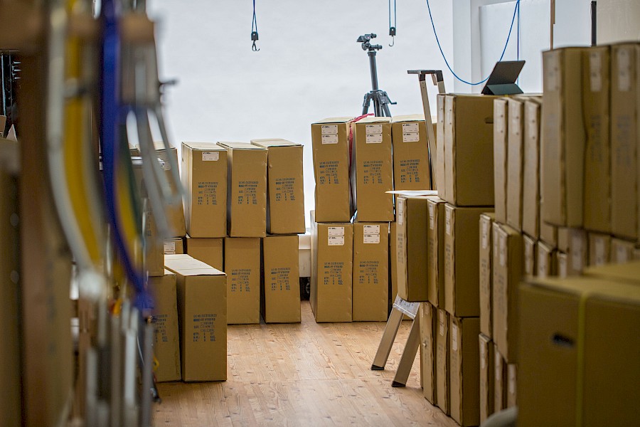 Und das ist ein Problem für uns, denn die zwei oder dreihundert Rahmen/Kartons müssen händisch in unser Rahmenlager in den ersten Stock getragen werden. Und viele Hände schnelles Ende trifft nur dann zu, wenn das ganze Velotraum-Team mit anpackt.