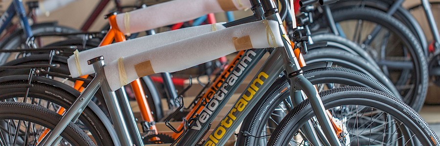 Nachdem nun die lange überfälligen VT-900 und FD-1300-Rahmen eingetroffen sind, verbessert sich unsere Lieferfähigkeit nochmals, insbesondere bei Rädern mit Rohloff und Pinion. Es zeichnen sich zwar für den Sommer die nächsten Engpässe (bei Shimano) ab, aber wer sich jetzt entscheidet, hat eine sehr gute Chance im Sommer ein neues Velotraum sein Eigen zu nennen.