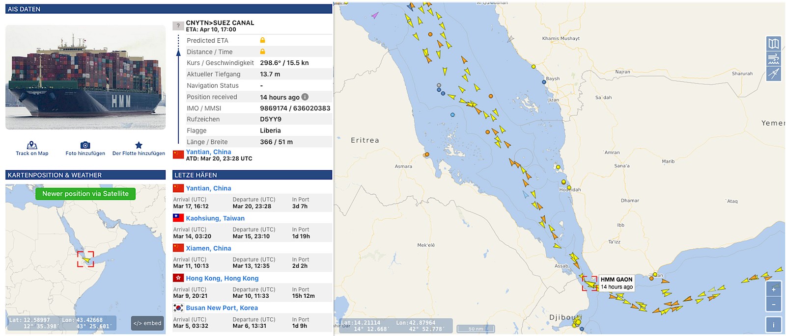 Bisher hat uns das nicht die Bohne interessiert, schließlich waren die Schiffe nach fünf bis sechs Wochen in Hamburg – mehr gab es nicht zu wissen. Inzwischen sind die Laufzeiten nicht mehr kalkulierbar und dazu braucht es kein quer stehendes Schiff im Suezkanal. Zur Illustration haben wir mal die Informationen des 366-Meter-Dampfers abgebildet, auf dem sich zur Zeit unsere SP400-Rahmen »vergnügen«. Momentan irrlichtert das Schiff am Horn von Afrika umher und soll Ende Mai – normal wäre Mitte April – in Hamburg eintreffen. Wohlgemerkt soll … Für alle Kunden, die bereits sehnsüchtig auf ihren neuen Speedster mit SP400-Rahmen warten, haben wir nach den bereits vorangegangen Verzögerungen keinen wirklichen Trost mehr, allenfalls den Hinweis, dass wir uns bis zum Umfallen kümmern und andere Hersteller dieses Jahr überhaupt nicht (mehr) liefern können. Wir dürfen immerhin noch hoffen, frei nach Lale Anderson: »Ein Schiff wird kommen …« ;-/