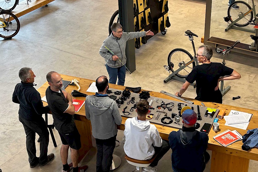 Nachdem Stefan in den letzten Wochen, Monaten und Jahren sein Wissen über Fahrradanpassungen mit dem Velotraum-Team geteilt hat, wurde diese Wissensbasis noch einmal erweitert. Die in der Branche sehr bekannte Juliane Neuss war letzte Woche auf unsere Einladung hin zu einem Workshop in Weil der Stadt. Im theoretischen Teil berichtete Juliane sehr ausführlich über ihre Erkenntnisse aus vielen Jahren Fahrradanpassung. Hier konnten wir viel mitnehmen, auch das Zusammenspiel der Körperpartien bei der ergonomischen Anpassung war lehrreich. Viele Erkenntnisse konnte Juliane durch kleine Fallstudien mit Meisterschülern an der Meisterschule in Frankfurt gewinnen. Im praktischen Teil haben sich alle Team-Mitglieder unter Anleitung von Juliane die passende individuelle Sitzposition erarbeitet. Dabei wurde der ein oder andere auch überrascht und wir haben manche Anregung übernommen.