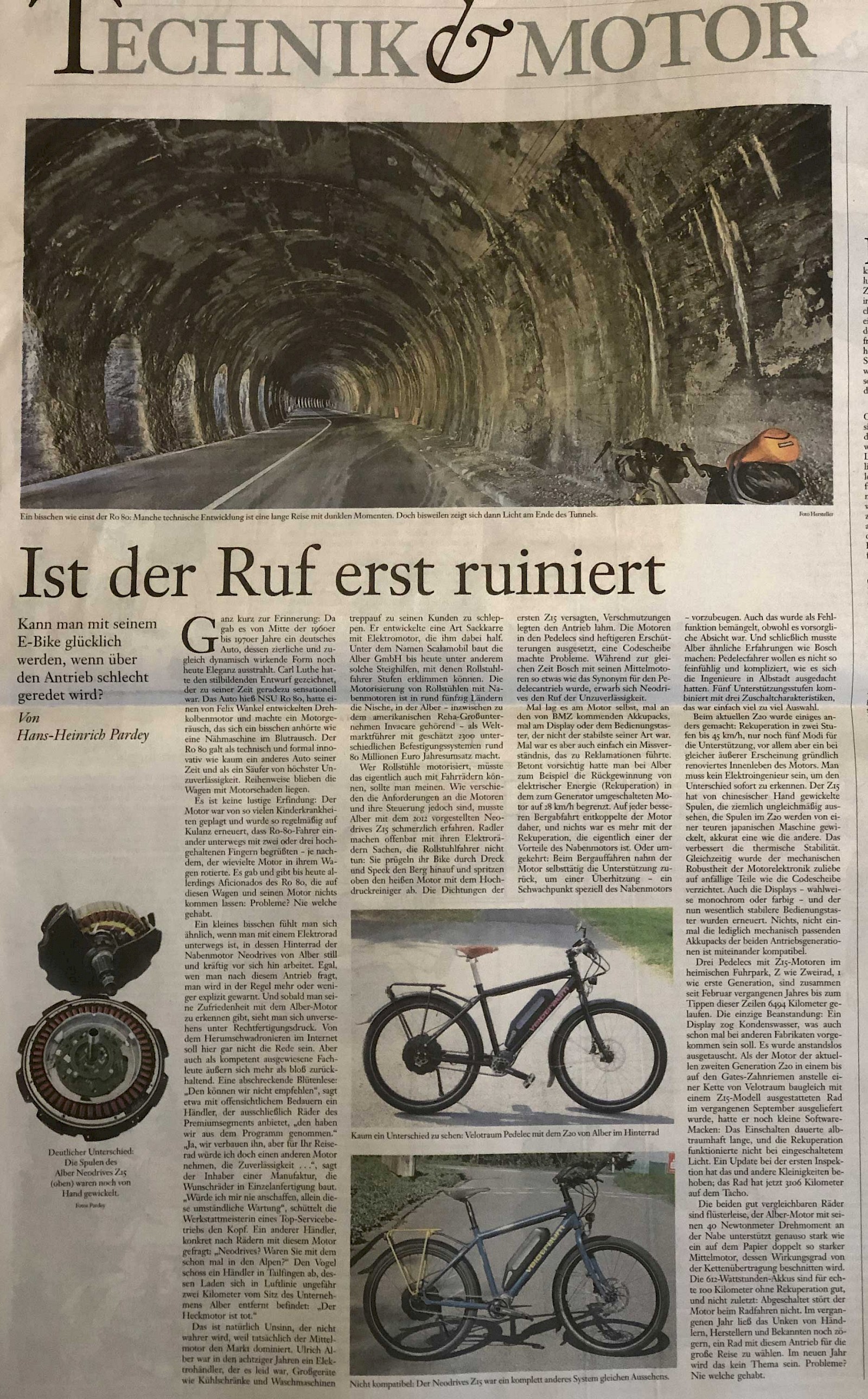 - In der Frankfurter Allgemeinen Sonntagszeitung vom 13. Januar 2019 beschreibt Hans-Heinrich Pardey ausführlich und differnziert über die Firmenhintergründe und seine Erfahrungen mit dem Z15- und Z20-Neodrives-Nabenmotor: »Ist der Ruf erst ruiniert«