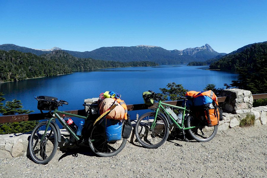 Von Puerto Natales – ziemlich weit unten – geht es nun schon 3 Monate lang die Anden entlang nach Norden. Selbst das Gerüttel auf dem »ripio« der Carretera Austral haben die Räder gut überstanden (da haben wir bei anderen Radlern einige Pannengeschichten mitbekommen). Nur der Freilauf der XT-Hinterachse hat zwischendrin den Geist völlig aufgegeben und total blockiert. Nach einigen Kilometern Radeln ohne Freilauf konnten wir einen neuen Freilauf einbauen lassen, der aber irgendwie nur kurz hielt. In Bariloche mussten wir dann eine komplett neue Hinterradnabe einspeichen, weil XT-Qualität leider nicht verfügbar war, hält hoffentlich noch durch bis Ecuador …