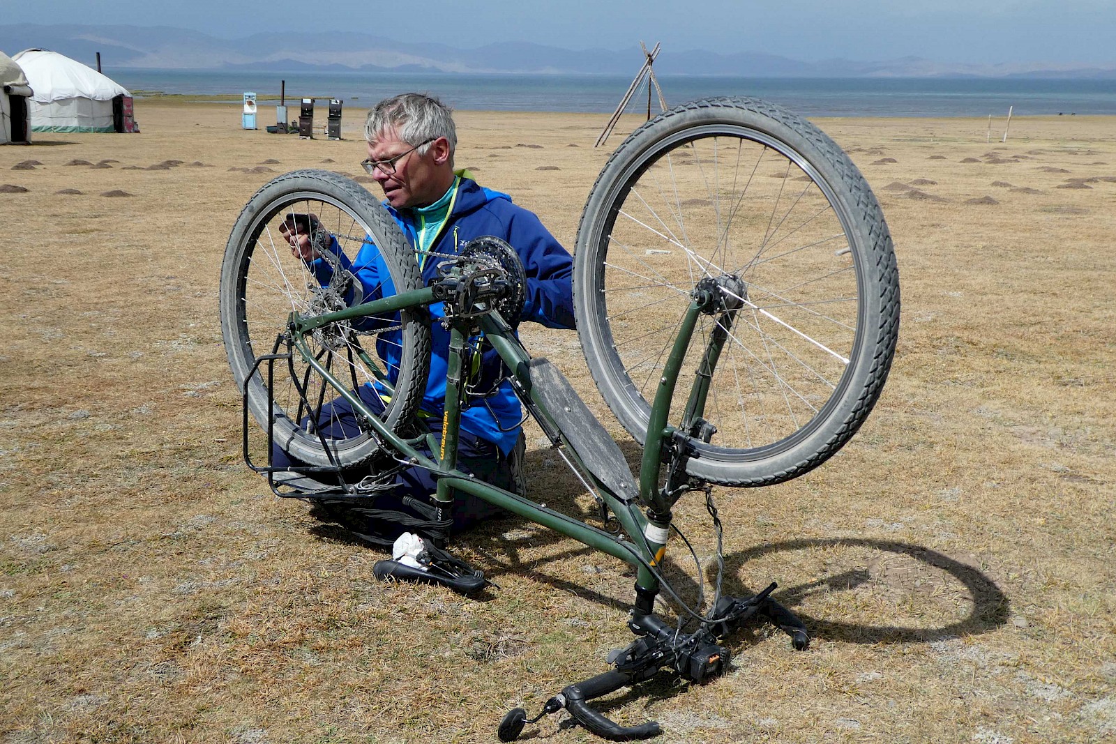 Bis auf zwei Platten hatten wir bisher keine Probleme (OK, heute hat der eine Freilauf etwas gehakt). Die Räder werden jetzt erst mal noch weitere 9 Monate mit uns unterwegs sein. Birgits Velotraum hat sich schon letztes Jahr in der Mongolei bewährt. Mehr Bilder gäbe es unter auf unserer Homepage.
