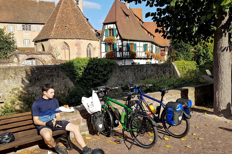 Am zweiten Tag ging es nach einem Kougelhupffrühstück in Kaysersberg, einem Ort, den man nur am frühen Morgen besuchen sollte, da es zu dieser Zeit noch nicht so viele Touristen hat, zum Col de Wettstein. Von dort zum Memorial de Ligne, einem Museum mit erhaltenen Schützengräben, Unterständen und einer Ausstellung. Wie es hier vor gut 100 Jahren einmal ausgesehen hat, kann man sich trotzdem nicht vorstellen. Auf einer steilen Abfahrt ging es dann ins Münstertal. Von dort aus weiter auf einem schönen Radweg in Richtung Rheintal und von dort zurück nach Cernay.