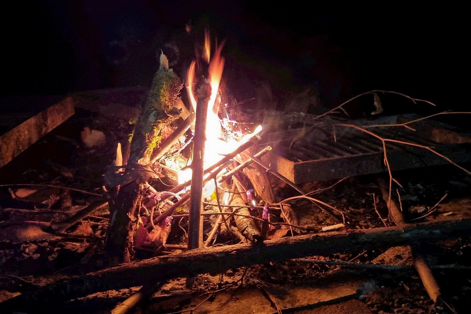 - Samstag, 19.30 Uhr: Nach zwei Stunden kreuz und quer über den Schurwald am angepeilten Übernachtungsplatz angekommen. Glück gehabt: Hütte ist leer, keine anderweitige Party. Gemütliches Lagerfeuer mit Bierchen, danach ab in den Schlafsack.