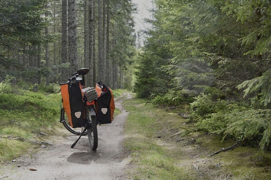 Mit dem Fahrrad habe ich mich auch in den Schwarzwald gewagt. Die breiten Reifen haben auf dem Schotter des Schwarzwaldradwegs (die hüglige Variante mittendurch) gut geholfen, nur die Übersetzung mit 42-16 hätte manchmal gerne noch kürzer sein können. Ein einstündiger Anstieg mit einem kurzen Schlussanstieg von 18% am Ende als Würze schlaucht schon sehr, insbesondere mit zwei Radtaschen.