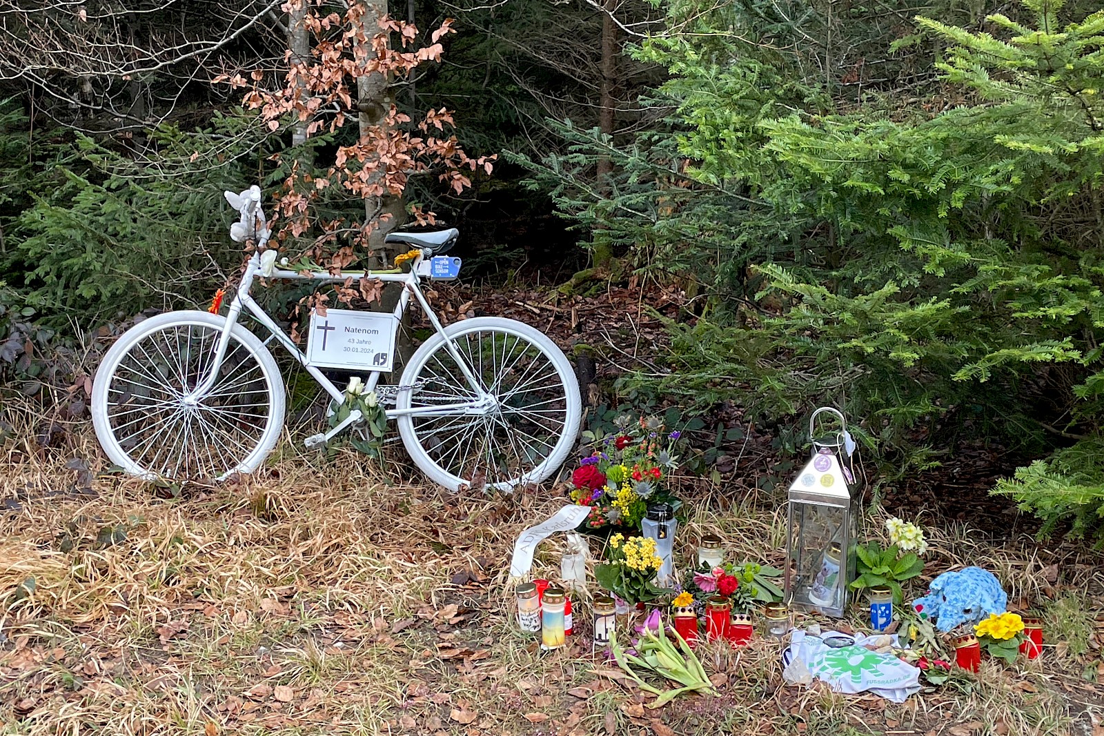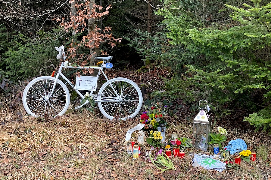 Während ich diese Zeilen schreib – am Tag nach der Demonstration – bin ich unglaublich wütend. Nicht nur über die Unnötigkeit des Todes von Natenom, sondern auch sehr stark darüber, dass die Gedenkstätte bereits verwüstet wurde. ADFC Pforzheim-Enzkreis und die Critical Mass Pforzheim haben gemeinsam mit weiteren Partnern Anzeige erstattet und die Polizei hat die Ermittlungen wegen Störung der Totenruhe eingeleitet. Nach der Spurensicherung seitens der Polizei wurde die Gedenkstätte wieder hergerichtet.