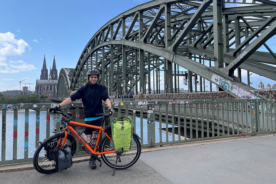 Was die Höhenmeter betrifft habe ich insgesamt eine recht flache Route gewählt, denn ich habe Köln angesteuert (finde ich einfach eine sehr schöne Stadt; ich war im Voraus schon vier Mal dort, bisher allerdings noch nie mit dem Fahrrad) und bin anschließend am Rhein entlang weiter gefahren. Der Weg am Rhein entlang ist auch sehr schön, wenn auch recht bekannt und daher viel befahren. Ich nenne den Rhein-Radweg inzwischen gern die „Rentner-Autobahn“. Entsprechend hoch ist die E-Bike-Quote – aber das ist ja kein Problem, denn ich war üblicherweise schneller ;-)