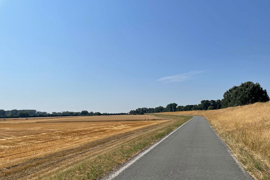 Bereits ungefähr 500 Meter hinter der dänisch-deutschen Grenze wurde die Radinfrastruktur schlechter – willkommen in Deutschland! (Wobei ich der Ehrlichkeit halber zugeben muss, dass sie auch in Norddeutschland meines Erachtens nach noch recht im Rahmen war.) Ungewohnt war auch, dass ich plötzlich wieder mit anderen Menschen deutsch reden konnte, nachdem ich ja am letzten Dänemark-Tag nicht alleine gefahren bin und deshalb den ganzen Tag nur englisch geredet habe.