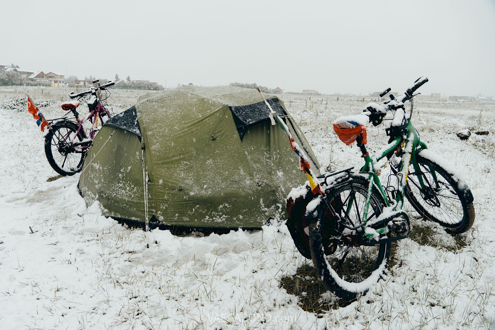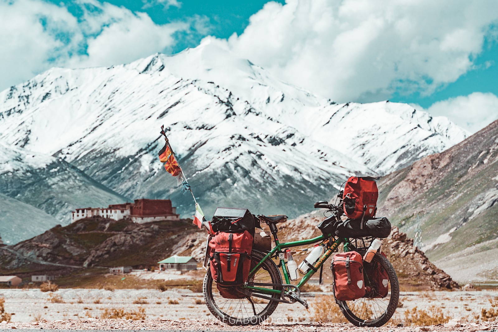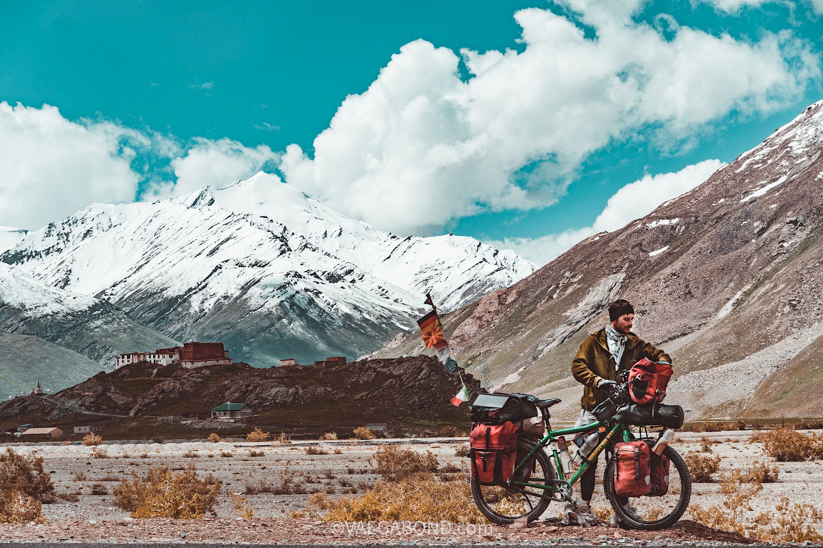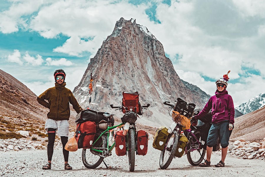 Hat uns das Spiti Valley schon beeindruckt, war das Tal Zanskar in Ladakh das Sahnehäubchen auf der Torte. Ladakh gehört zu den höchsten bewohnten Regionen der Welt. Das Hochplateau liegt im Durchschnitt auf einer Höhe von über 3.000m. Okay, wir müssen schon zugeben, die vielen Offroad Passagen mit den teilweise überschwemmten Straßen bzw. Pfaden, waren schon nicht ganz ohne. Wir haben aufgehört zu zählen, so oft mussten wir die Hosen hochkrempeln und unsere Rädern durch wadenhohes, eisig kaltes Gletscherwasser schieben. Immerhin ging es auch zwischendrin ordentlich bergauf und über Pässe jenseits der 5.000m mit Regen und Schnee. Und ja, seien wir ehrlich, es kamen auch mal Gedanken, wie »ich hab Hunger, mir ist kalt, ich hab keinen Bock mehr auf Berge. Ich will am Strand liegen mit einer Kokosnuss in der Hand …« Denn irgendwann waren wir an dem Punkt, wo wir einfach keine Geröllstraße mehr sehen wollten und unsere 60 bis 75kg schweren Fahrräder keinen Meter mehr bergauf bewegen wollten. Aber rückblickend hat es sich mehr als gelohnt! Das tut es eigentlich immer, egal wie schlimm die Strecke war. Bisher haben wir immer sehr viel positives aus allem gezogen!