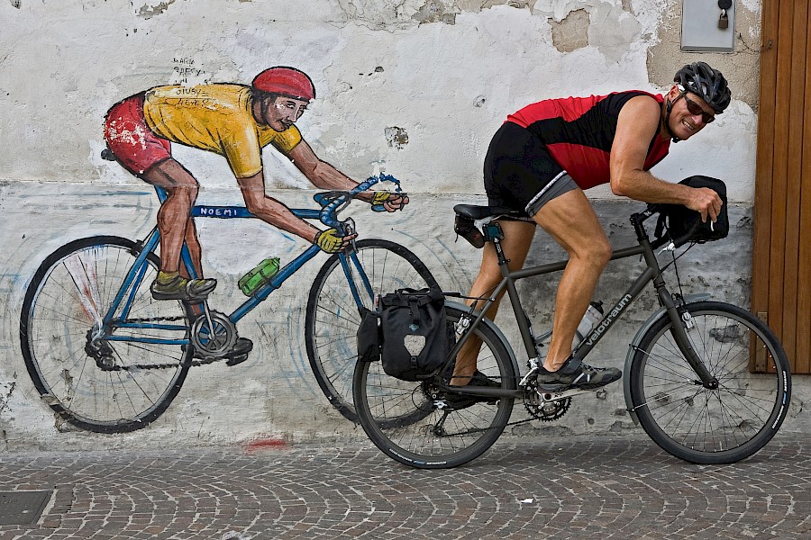 Die »Krücke« Fahrrad sollte dann innerhalb weniger Jahre mein Lebensgefühl bestimmen. Denn im Fahrrad fand ich ein Vehikel, das mich als Person in vielfältiger Weise »erweiterte«. Die Geschwindigkeit der Fortbewegung, die veränderte Wahrnehmung auf dem Rad, die Selbstbestimmtheit, das Schwimmen gegen die motorisierte Springflut, ein gewisses Außenseiterdasein, aber auch Understatement und Protesthaltung, der enorme Aktionsradius, Naturnähe und Naturerlebnis, die Lust am dahintreibenden und selbstbewegten Unterwegssein. Daran hat sich bis heute nichts geändert.