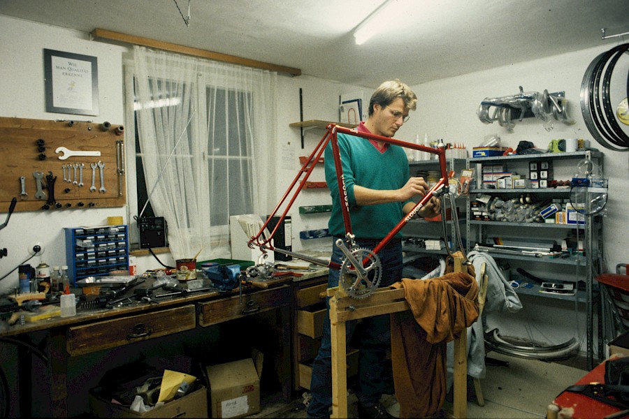 Kurz nach Beginn meines Architekturstudiums habe ich zusammen mit einem ehemaligen Freund ein Fahrrad-Keller-Geschäft gegründet (1986), heute würde man sagen ein Start-up. Dass aus diesem Hobby-G’schäftle einmal eine Fahrradmanufaktur und Marke werden würde, noch dazu mit mir als prägendem »Kopf«, hätte ich mir damals nicht träumen lassen. Und doch ist die spannende Geschichte von Velotraum rückblickend ein klar vorgezeichneter Weg, geprägt von persönlichen Leidenschaften und Überzeugungen.
